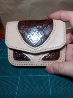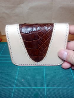 クロコダイル(ワニ)の革を使ってちょっと大きめに作ったコインケースです。