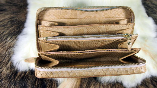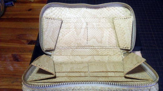 カード入れ部分などはヘビの模様などが崩れない様、細心の注意を払い製作しています。