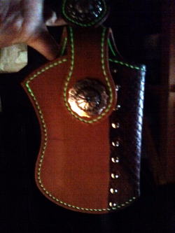 | 前回のiPhone4から5に機種変更したら、サイズが大きくなったんで入らないと言う事でご依頼を頂き制作しました。 今回は基本的な形は似ている物の、ダイヤモンドパイソンと言うヘビ革を使い、ちょっとワイルド系にしたり、畜光タイプの糸を使う等、前作とはかなり違うイメージの作品になってます。 また、ベルトループに本体を付けているので、スイング機能も健在です。 さらに、数ヵ月後にマスコットを付けるカスタマイズをしています。 |