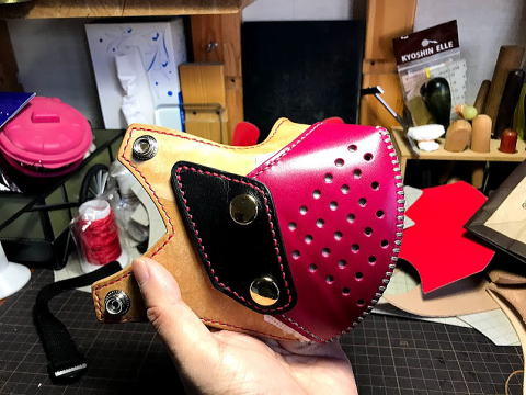 ベルトの部分は伸びが出ない様にナイロン系のベルトを使って、しっかり頭をホールドしてくれるタイプに作っています。