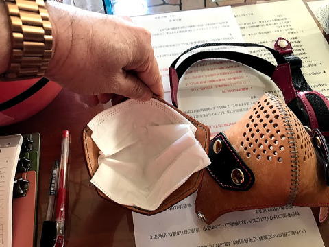 中に不織布マスクを入れる