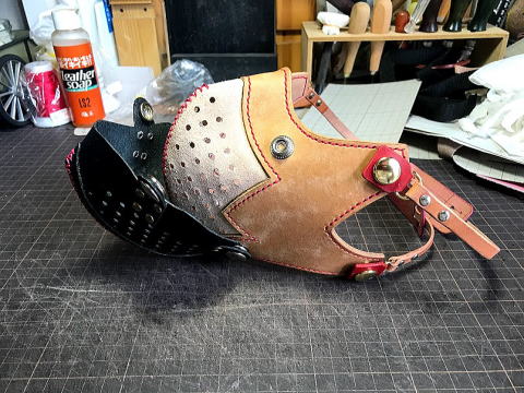 2020年に新型コロナウイルスが蔓延し始め、マスクが足りなくなった事から作った本革のマスクで、用途がペストマスクと似ている所からショートタイプのペストマスクと命名。