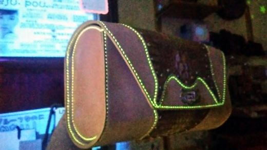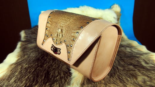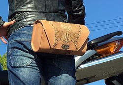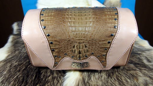 | ライダーさんのウエストバッグは、バイクに乗る時常に身に着けていたい物を入れておくバッグが欲しいと言うご依頼で制作しました。 使い込むほど風合いが変わる革にベビーカイマンと言うワニの革をほぼ1匹使い、鋲を打ちさらにワイルド系に! また、すぐに型崩れしない様に頑丈な構造で作ってあります。 光が当たると発光する糸を使い、夜間走行中の安全も考慮してあります。 後日、写真を送って下さったんですが、ライディングシューズと色を合わせるなど、お洒落に格好良く大事に使って頂いている様で、作った私としても大変嬉しいですね♪ |