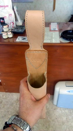 こちらの作品は、クレイツと言うメーカーから発売されている熱くないアイロンなんですが、火傷もしないと言う構造になっているので革も焼けません。