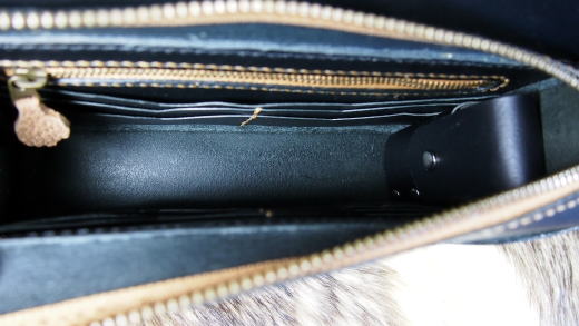 こちらの作品はショルダーポーチなんですが、どちらかと言うと大きなお財布みたいな作りになってます。